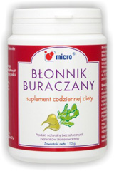 Błonnik buraczany zawiera dużą zawartość rozpuszczalnych frakcji błonnika (ponad 27 %). Uzupełnienie diety błonnikiem rozpuszczalnym, powoduje zwiększone wiązanie i wydalanie cholesterolu i kwasów żółciowych, a w efekcie i zmniejszone wchłanianie. Rozpuszczalny błonnik pokarmowy, wpływa na obniżenie poziomu cholesterolu (zwłaszcza „złego” – LDL) w surowicy krwi. Błonnik buraczany, może służyć jak zagęstnik sosów, może być dodawany do przecierów, potraw na bazie pomidorów czy wzbogaconych czerwonym winem. Błonnik po spożyciu chłonie wodę i pęcznieje w przewodzie pokarmowym dając poczucie sytości - zapobiega tyciu. Błonnik zwiększa perystaltykę i przyśpiesza proces wydalania masy pokarmowej. Skraca to czas kontaktu toksycznych substancji ze ścianą jelit, czas absorpcji tłuszczów, zmniejsza wchłanianie cholesterolu i triglicerydów. Błonnik jest prebiotykiem przyczyniającym się do rozwoju mikroflory jelitowej, tworząc naturalne podłoże i pożywkę dla bakterii probiotycznych. Codzienna dieta każdego człowieka różni się od siebie, dlatego dawkowanie , należy dostosować do indywidualnych potrzeb. Zacząć od małych porcji (1 łyżeczka ok. 3,5g dziennie) i stopniowo zwiększać do uzyskania optymalnych rezultatów. Błonnik wymieszać z wodą, innym napojem lub jogurtem. Każdorazowo popić szklanką wody. Nie spożywać na sucho. Nie należy przekraczać porcji 7 łyżeczek dziennie.
